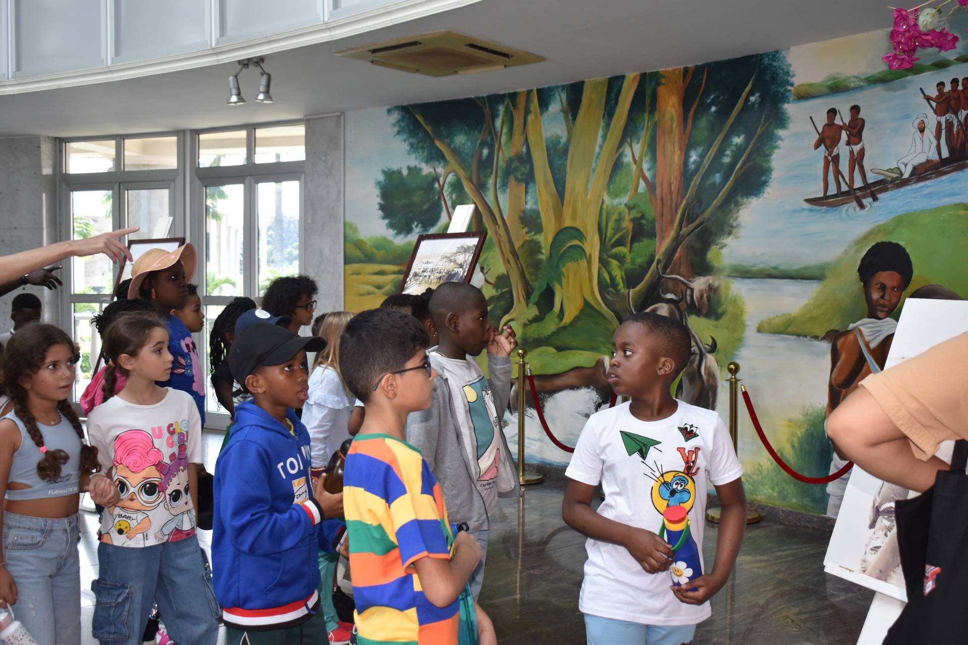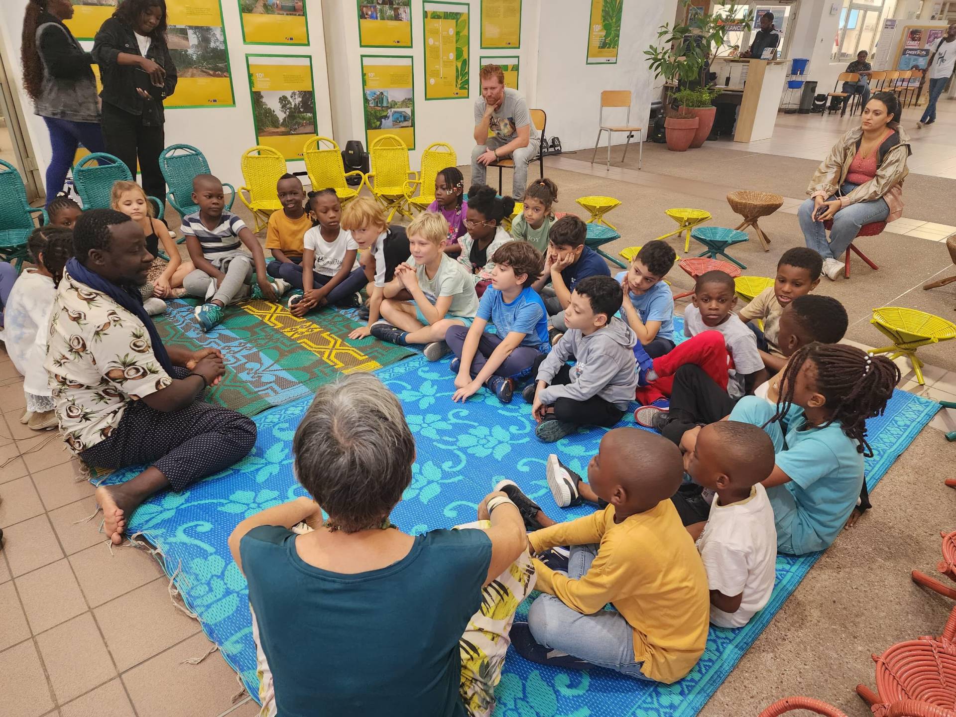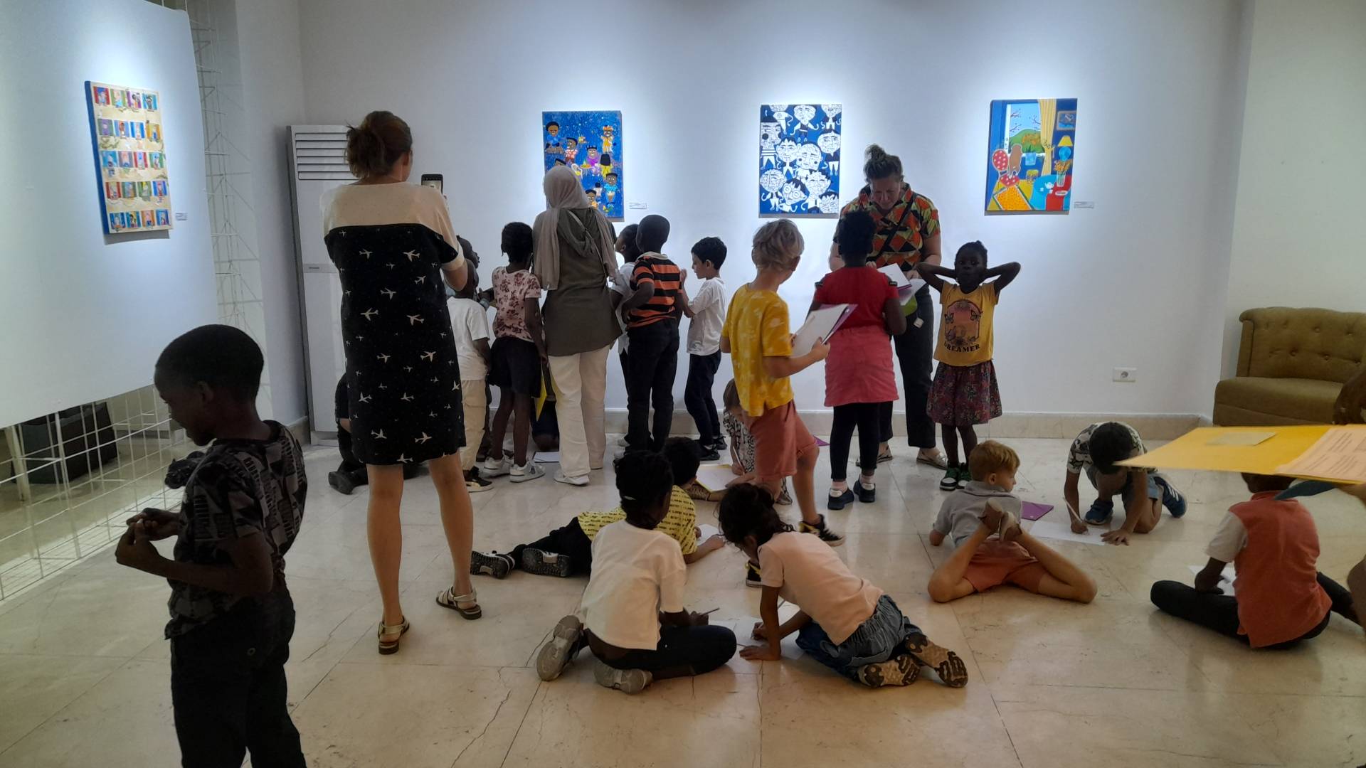 Lors de la visite du vernissage, une peintre française récemment installée au Congo a accueilli de jeunes visiteurs de CE1 et CP. Ces enfants ont eu l’opportunité d’échanger avec l’artiste, lui posant des questions et découvrant les techniques et les inspirations derrière chaque toile. Cette rencontre leur a permis de mieux comprendre l’univers artistique de la peintre et de s’initier à l’art contemporain.
