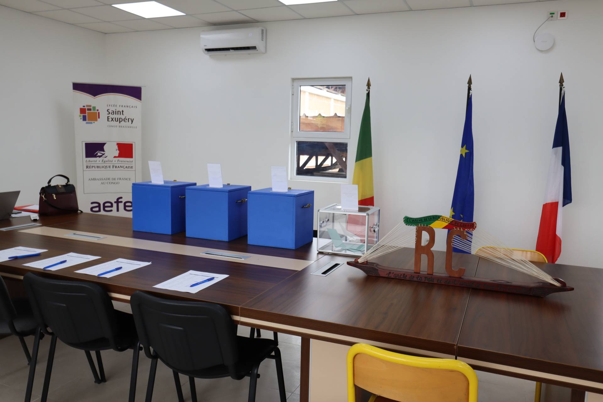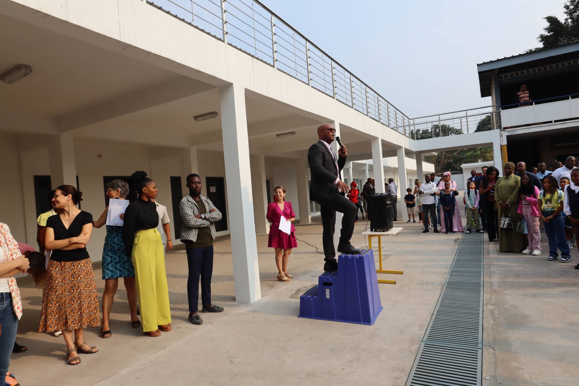 Pour la première fois depuis sa création, le lycée international français Saint‑Exupéry de Brazzaville a eu l’honneur d’accueillir la Directrice générale de l’AEFE, Madame Claudia Scherer‑Effosse, accompagnée de la cheffe de secteur ZAAO‑OI, Madame Patricia Reynaud. Le jeudi 17 avril, la Directrice générale a échangé avec la direction de l’établissement, le comité de gestion ainsi que les représentants des élèves, du personnel et des parents. Puis, le vendredi 18 avril, en présence de l’ambassadrice de France, de représentants du ministère de l’Éducation et d’une centaine d’invités, elle a officiellement inauguré les nouveaux bâtiments en coupant le ruban inaugural.